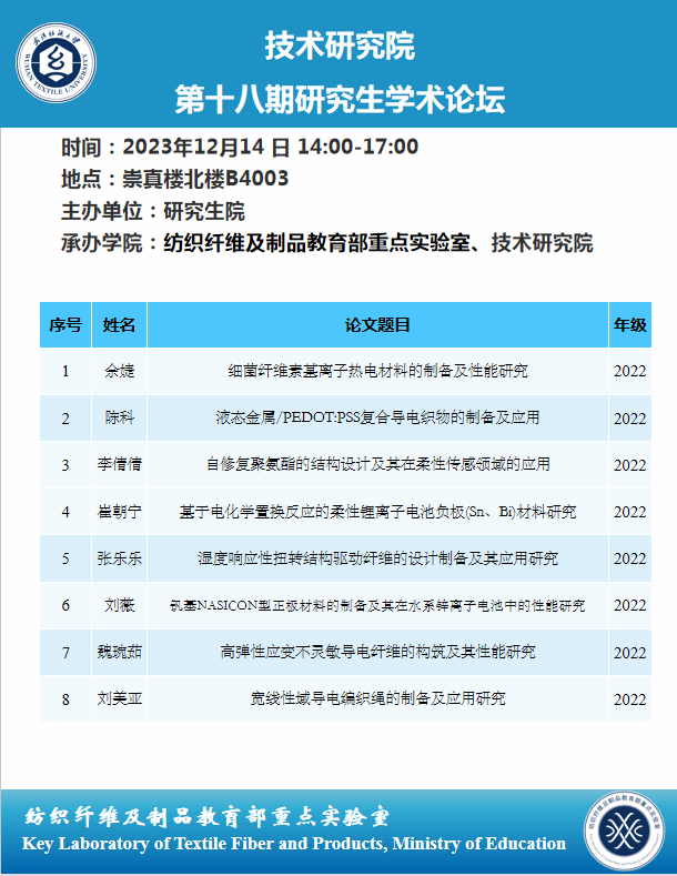 学术预告:第477期研究生学术论坛暨技术研究院2023年第18期研究生学术论坛