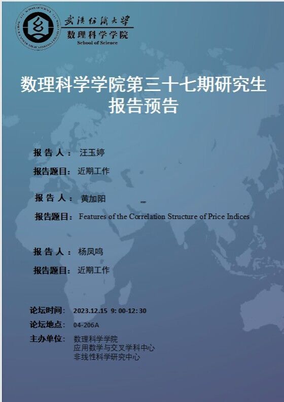 学术预告:第484期研究生学术论坛暨数理科学学院2023年第37期研究生学术论坛