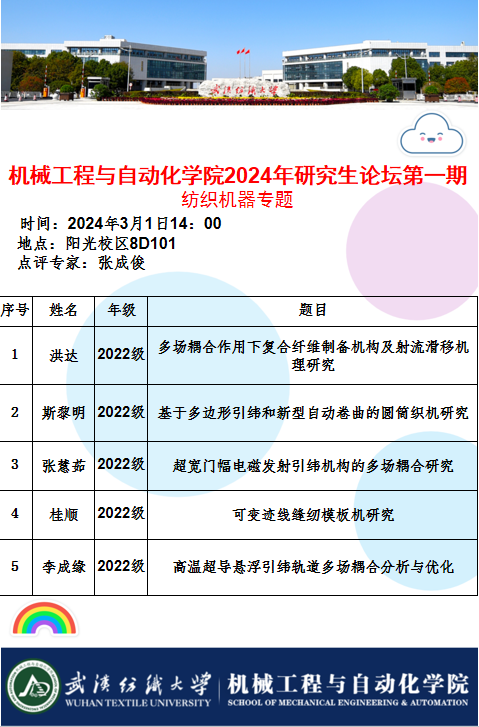 学术预告:第497期研究生学术论坛暨机械工程与自动化学院2024年第1期研究生学术论坛