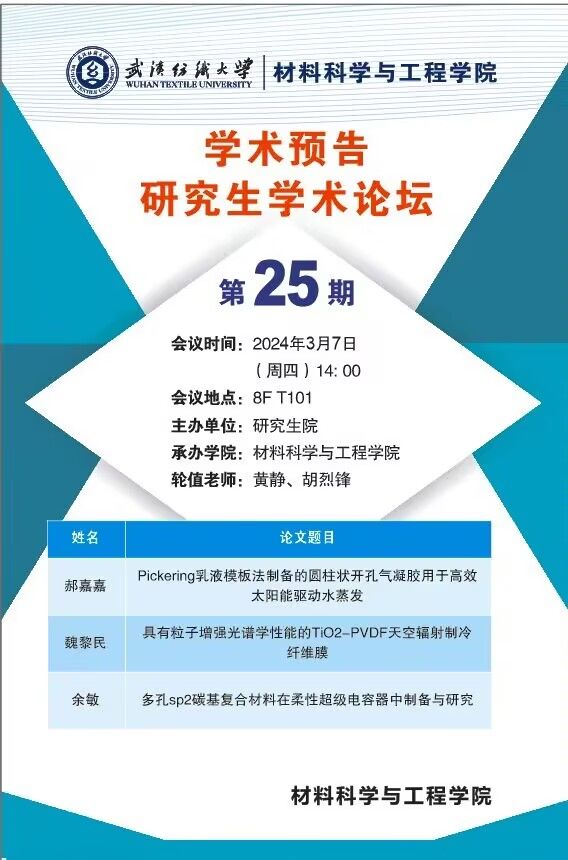 学术预告:第498期研究生学术论坛暨材料科学与工程学院2024年第1期研究生学术论坛