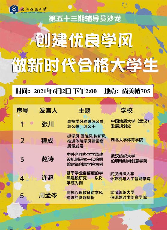 地 点:南湖校区尚美楼705室