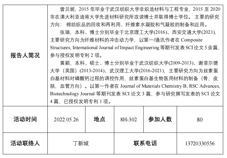第137期“阳光论坛”暨纺织科学与工程学院青年博士论坛