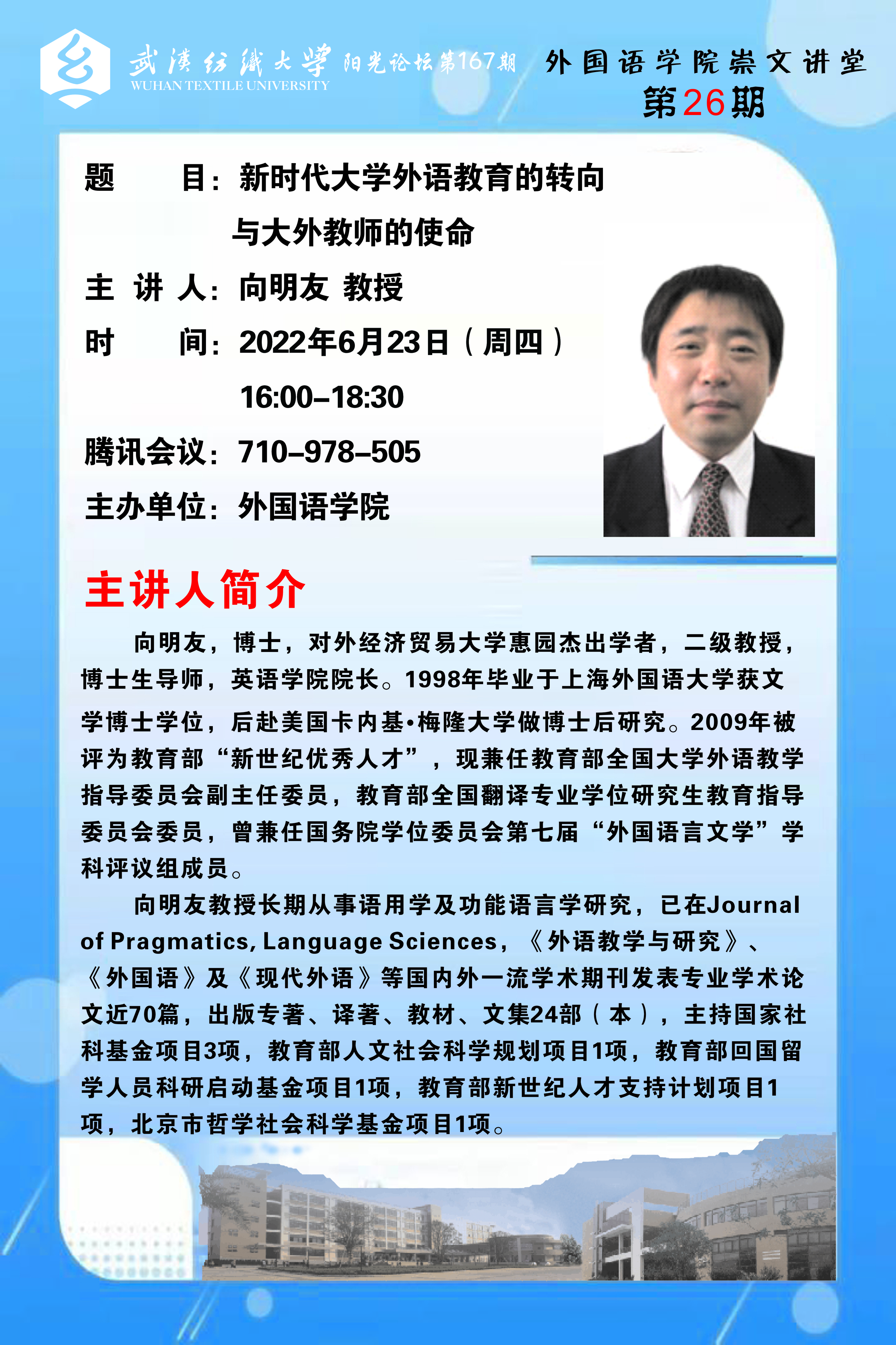 第167期阳光论坛暨外国语学院第26期崇文讲堂