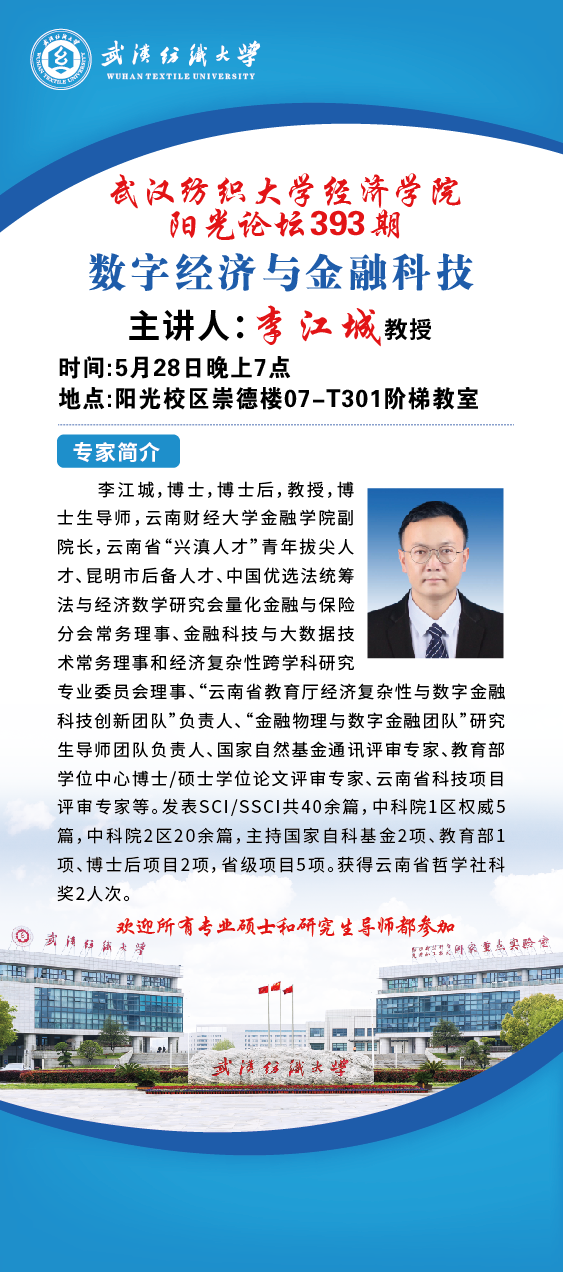 学术预告:第393期阳光论坛暨第28期经世讲堂-院14期