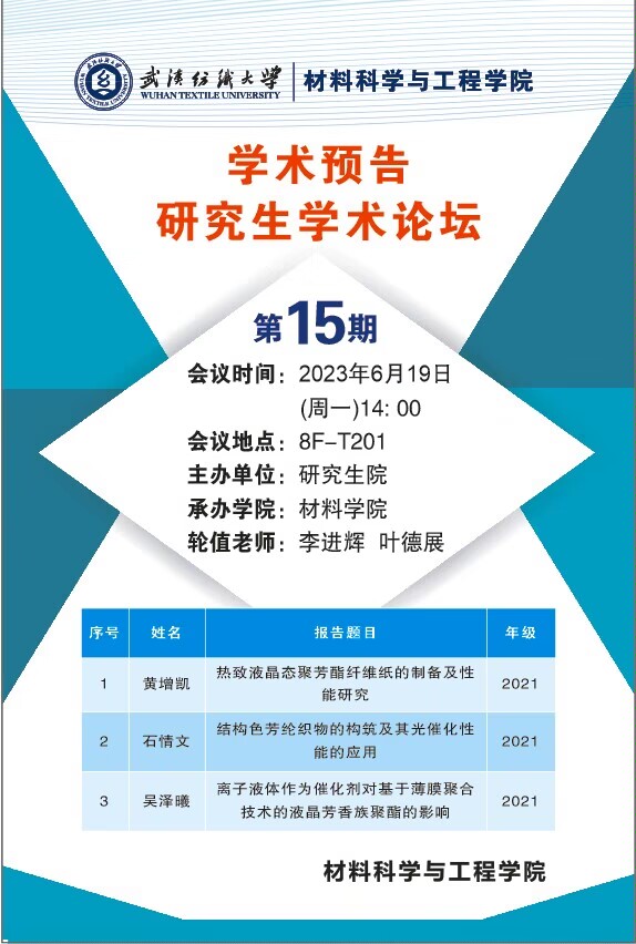 学术预告:第319期研究生学术论坛暨材料科学与工程学院2023年第15期研究生学术论坛