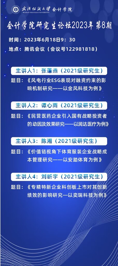 学术预告:第320期研究生学术论坛暨会计学院2023年第8期研究生学术论坛