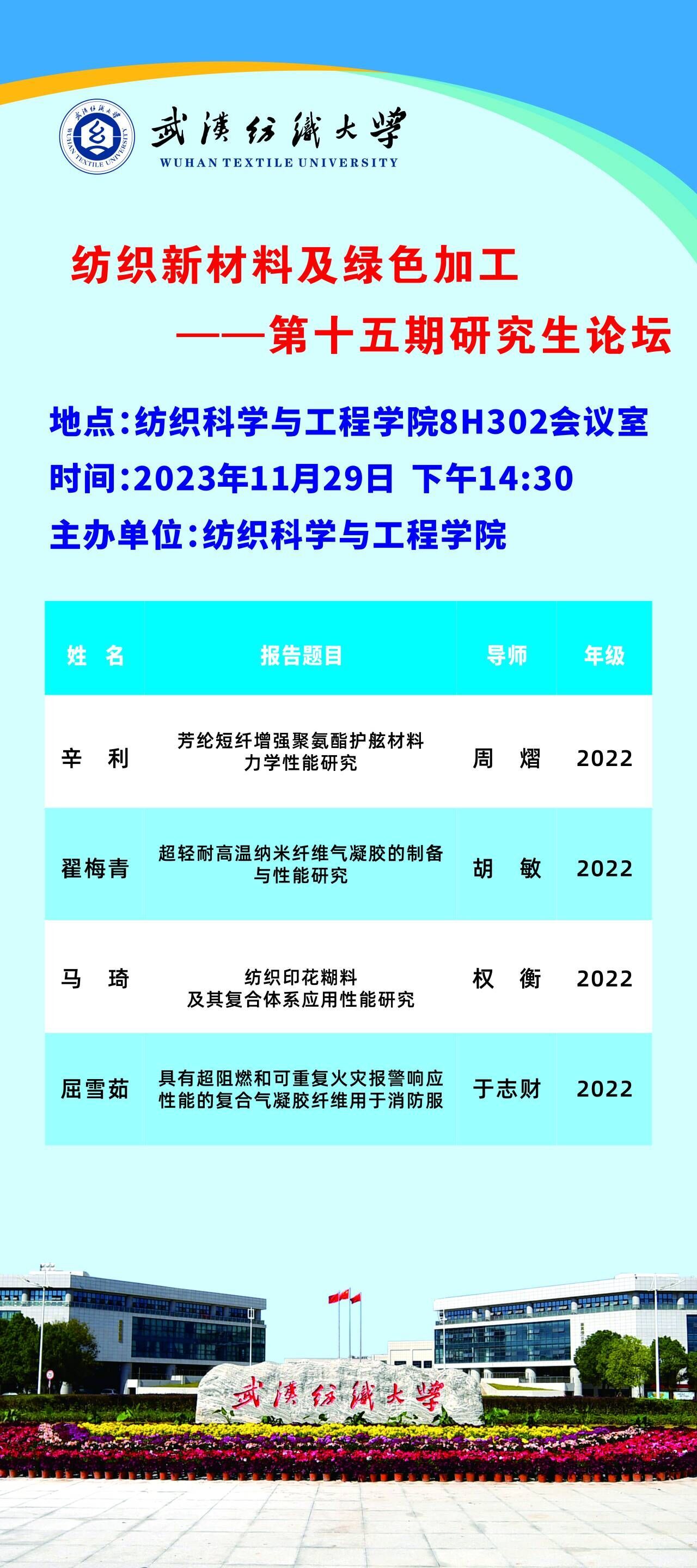 学术预告:第437期研究生学术论坛暨纺织科学与工程学院2023年第7期研究生学术论坛