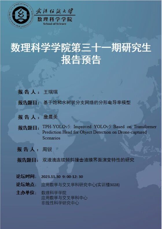 学术预告:第443期研究生学术论坛暨数理科学学院2023年第31期研究生学术论坛