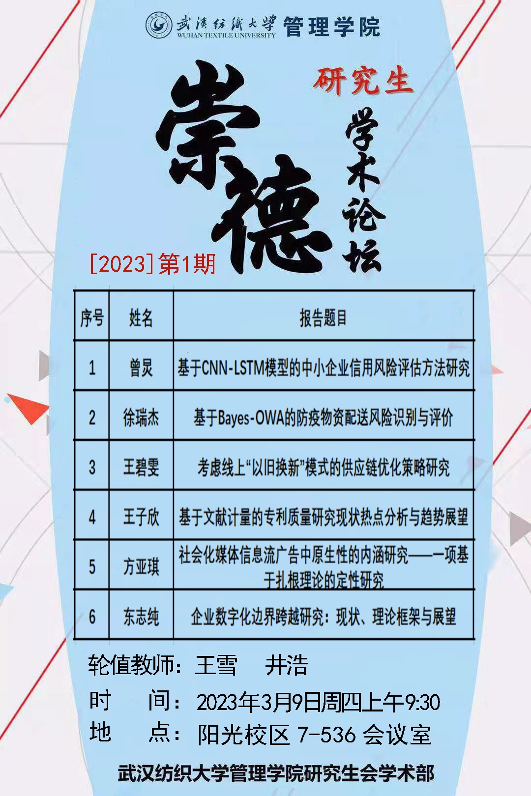 学术预告:第204期研究生学术论坛暨管理学院2023年第1期研究生学术论坛