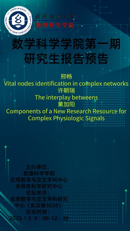 学术预告:第221期研究生学术论坛暨数理科学学院2023年第1期研究生学术论坛