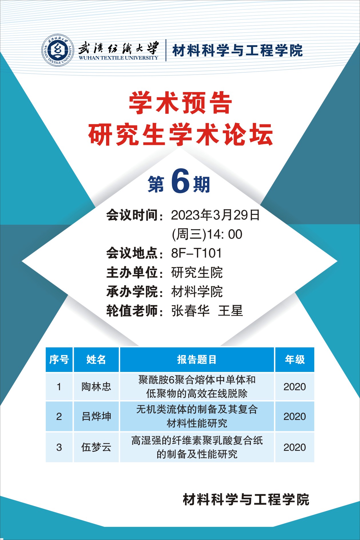 学术预告:第228期研究生学术论坛暨材料科学与工程学院2023年第6期研究生学术论坛