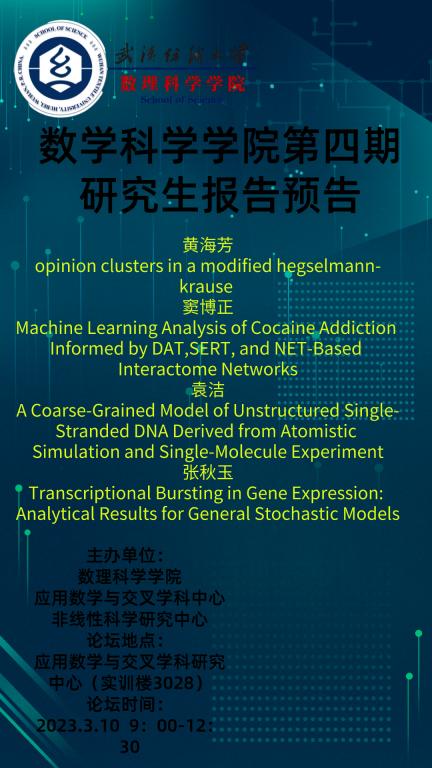 学术预告:第234期研究生学术论坛暨数理科学学院2023年第4期研究生学术论坛