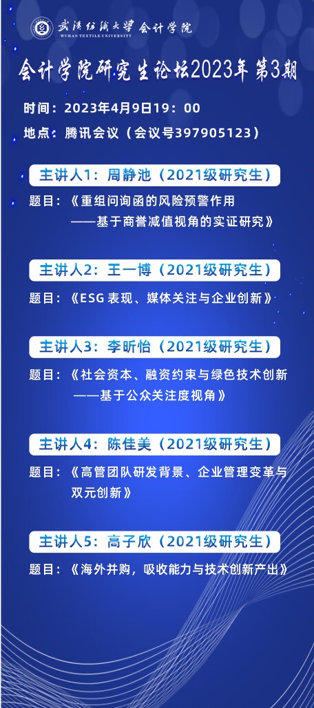 学术预告:第245期研究生学术论坛暨会计学院2023年第3期研究生学术论坛
