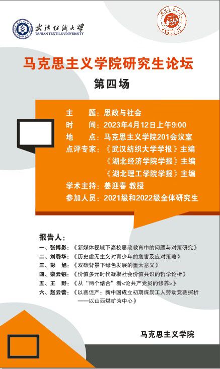 学术预告:第249期研究生学术论坛暨马克思主义学院2023年第4期研究生学术论坛