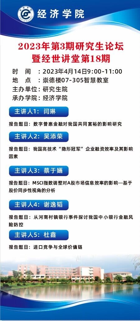 学术预告:第251期研究生学术论坛暨经济学院2023年第3期研究生论坛