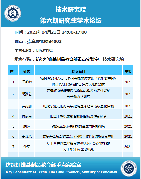 学术预告:第265期研究生学术论坛暨技术研究院2023年第6期研究生学术论坛