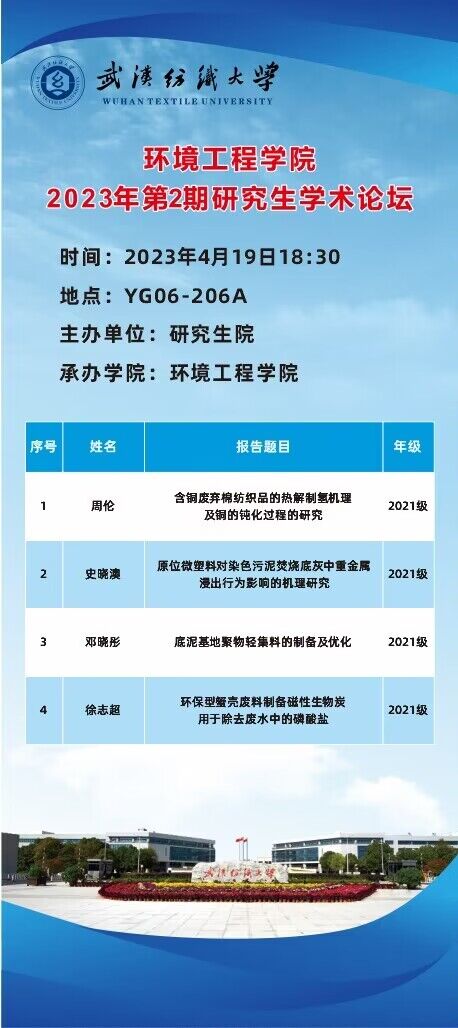 学术预告:第267期研究生学术论坛暨环境工程学院2023年第2期研究生学术论坛