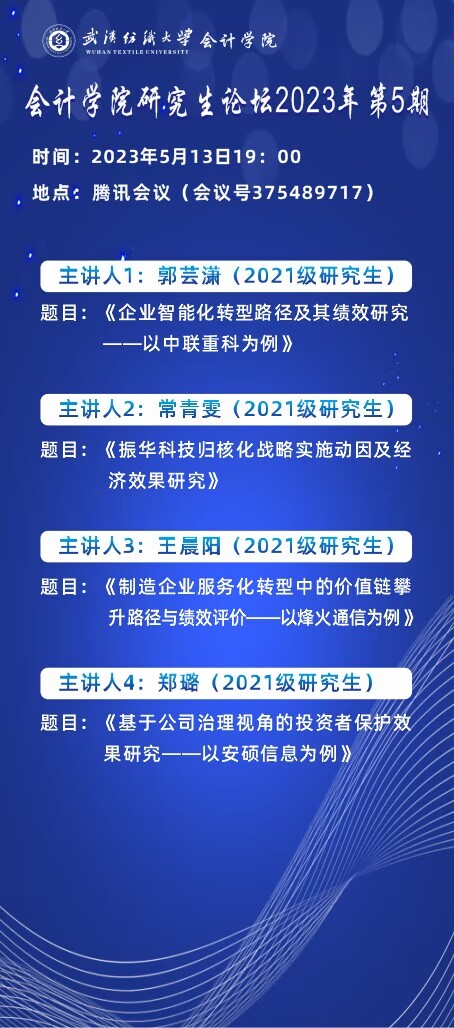 学术预告:第290期研究生学术论坛暨会计学院2023年第5期研究生学术论坛