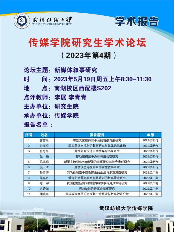 学术预告:第295期研究生学术论坛暨传媒学院2023年第4期研究生学术论坛