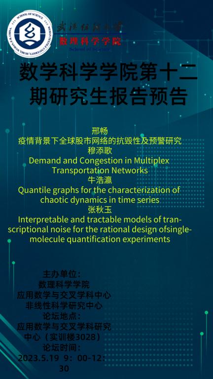 学术预告:第309期研究生学术论坛暨数理科学学院2023年第12期研究生论坛