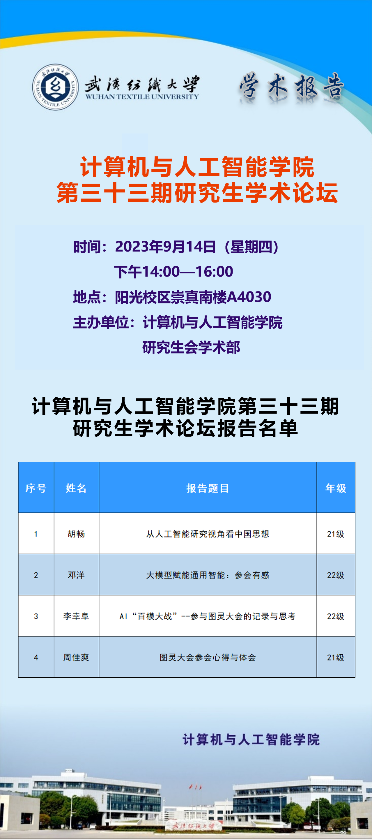 学术预告:第329期研究生学术论坛暨计算机与人工智能学院2023年第9期研究生学术论坛