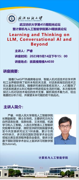 学术预告:第455期阳光论坛Learning and Thinking on LLM, Conversational AI and Beyond