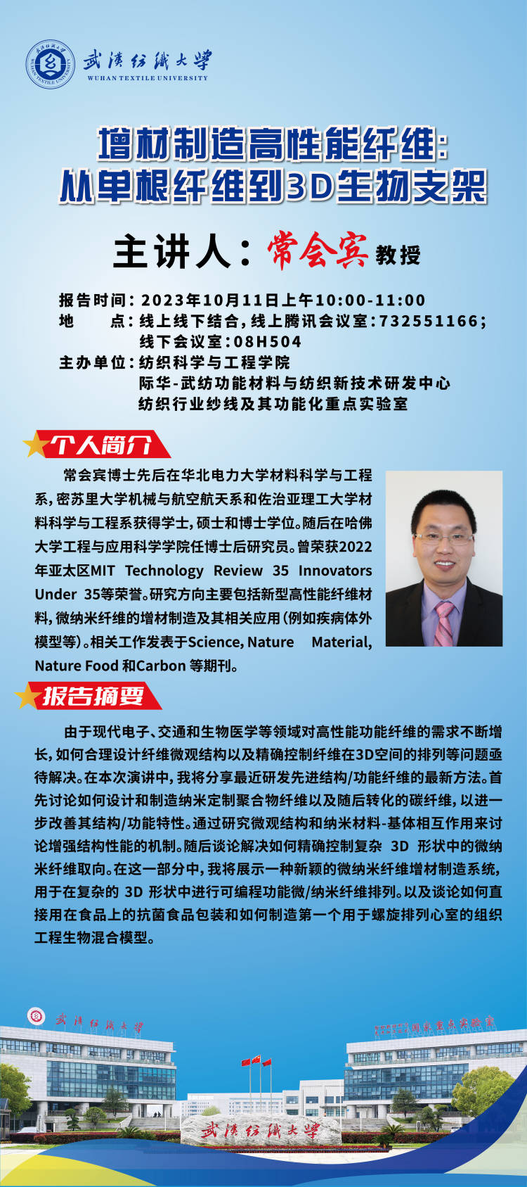 学术预告:第462期阳光论坛增材制造高性能纤维:从单根纤维到3D生物支架