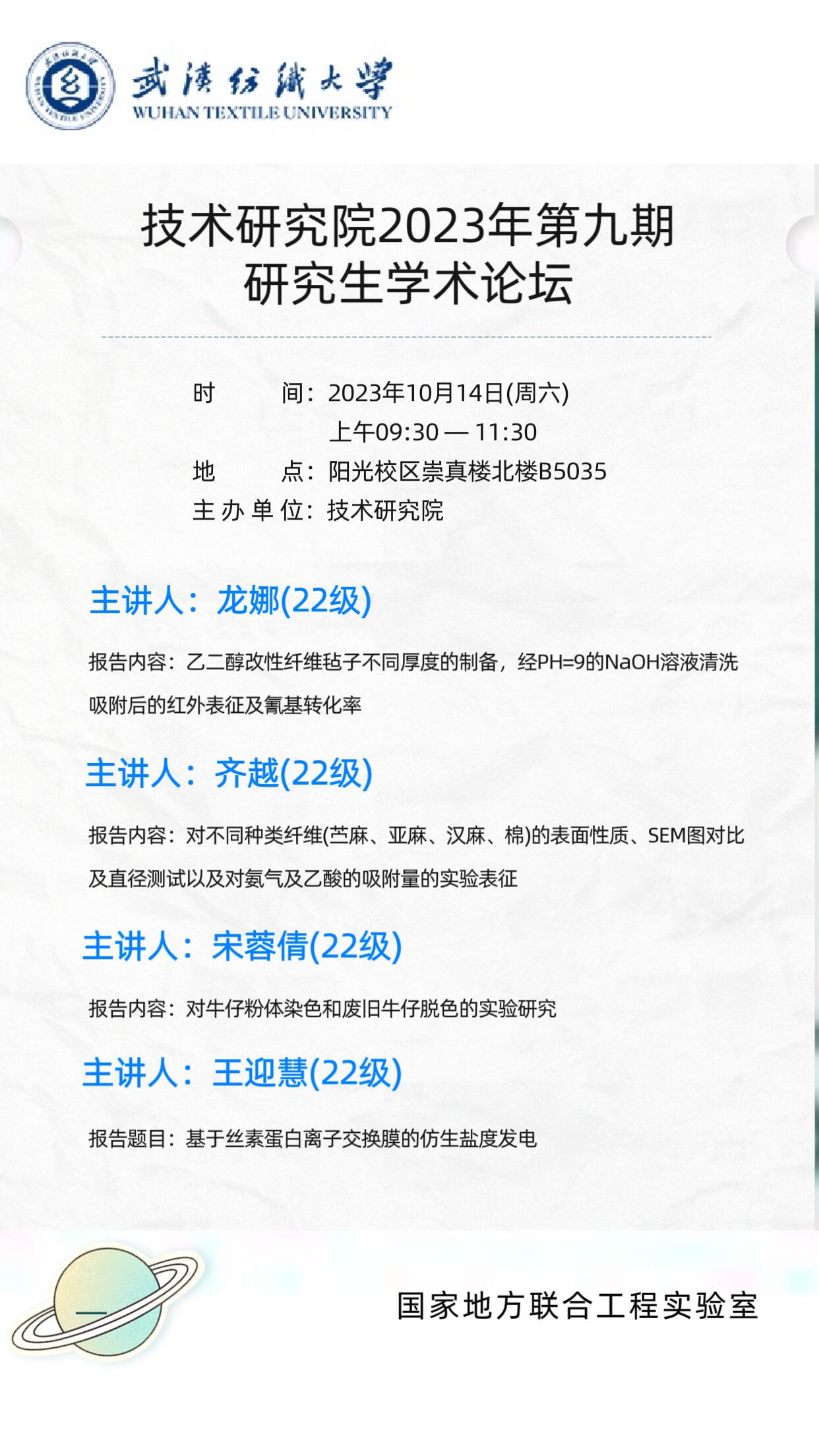 学术预告:第352期研究生学术论坛暨技术研究院2023年第9期研究生学术论坛