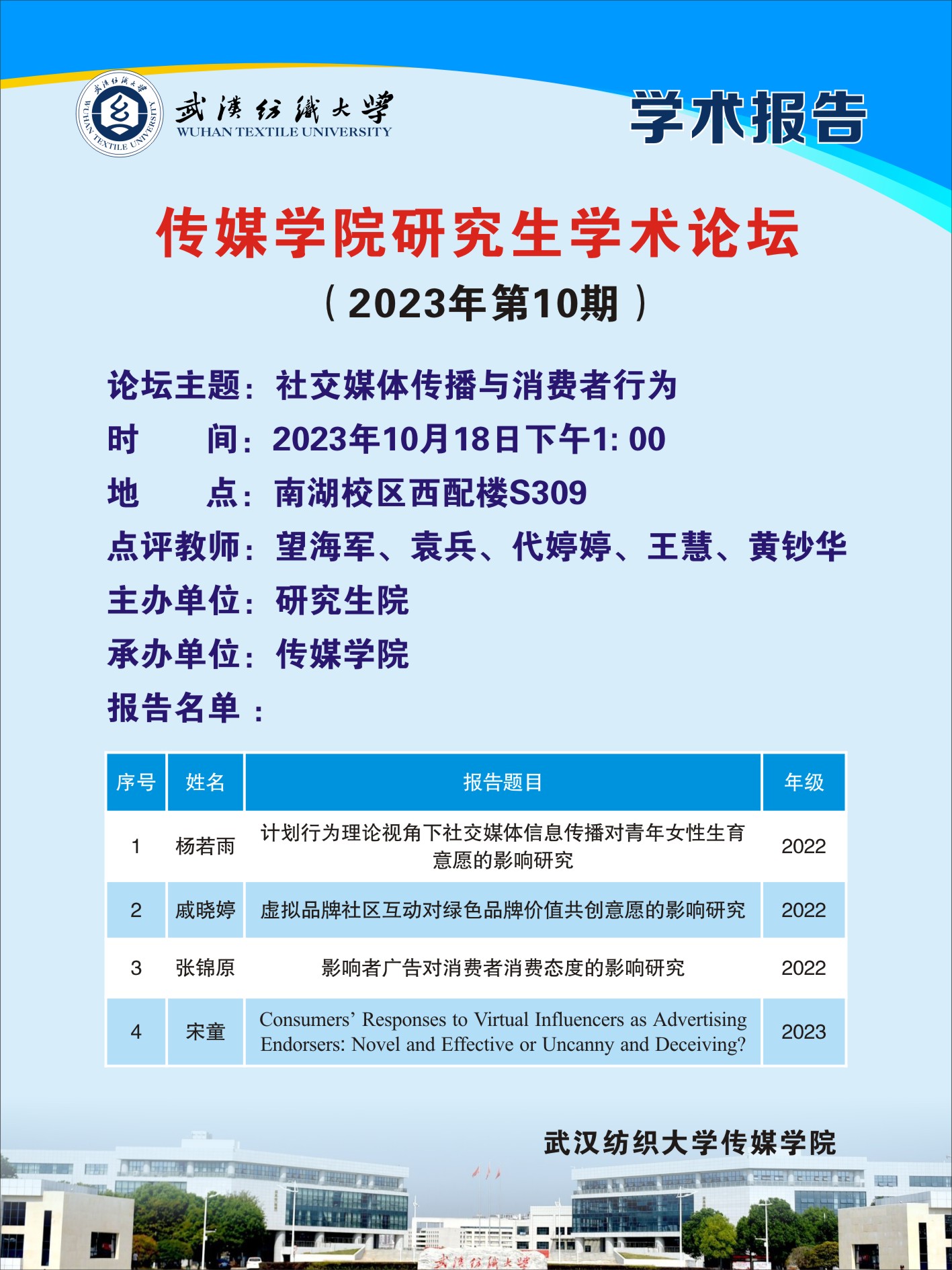 学术预告:第357期研究生学术论坛暨传媒学院2023年第10期研究生学术论坛