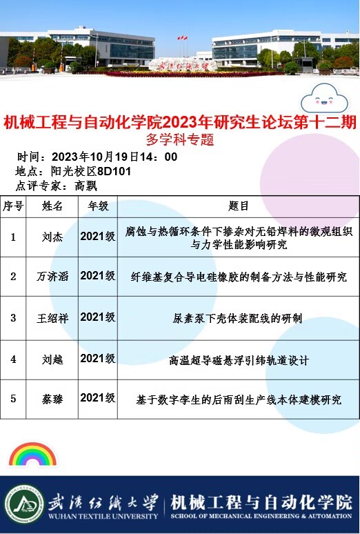 学术预告:第364期研究生学术论坛暨机械工程与自动化学院2023年第12期研究生学术论坛