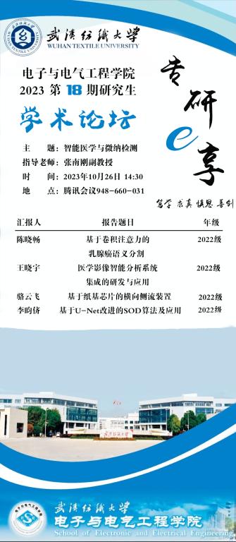 学术预告:第374期研究生学术论坛暨电子与电气学院2023年第18期研究生学术论坛