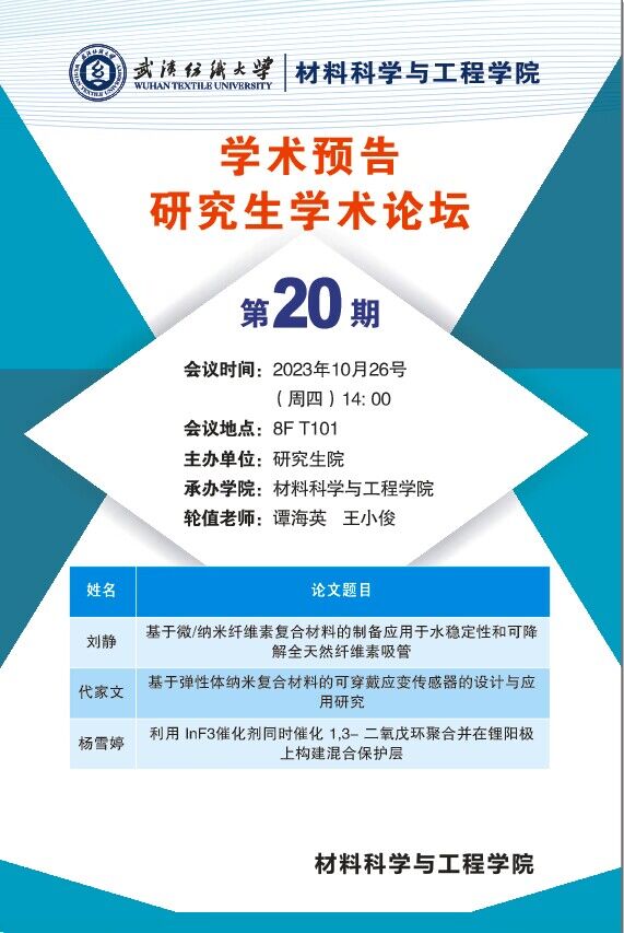 学术预告:第381期研究生学术论坛暨材料科学与工程学院2023年第20期研究生学术论坛