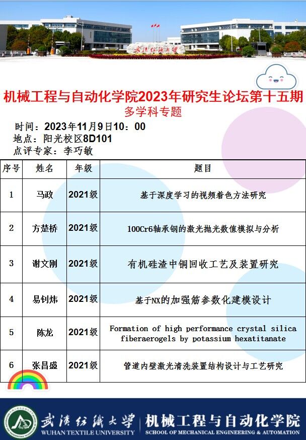 学术预告:第403期研究生学术论坛暨机械工程与自动化学院2023年第15期研究生学术论坛