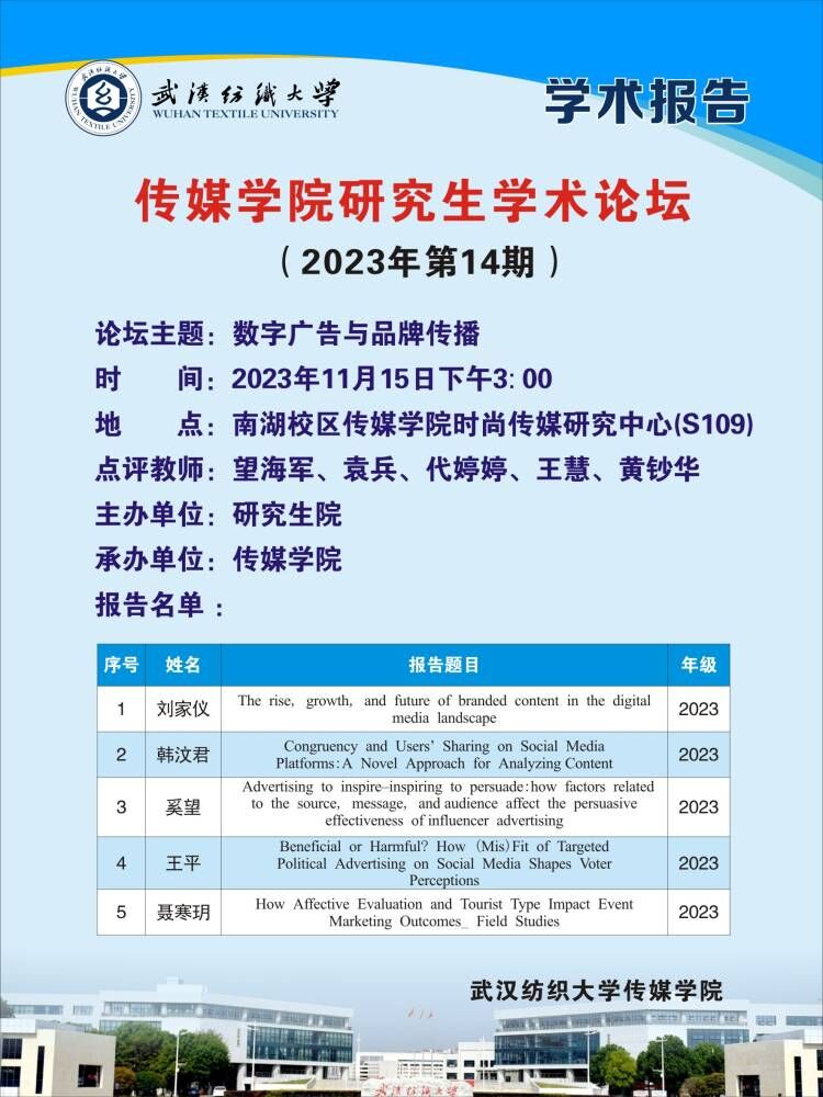 学术预告:第409期研究生学术论坛暨传媒学院2023年第14期研究生学术论坛