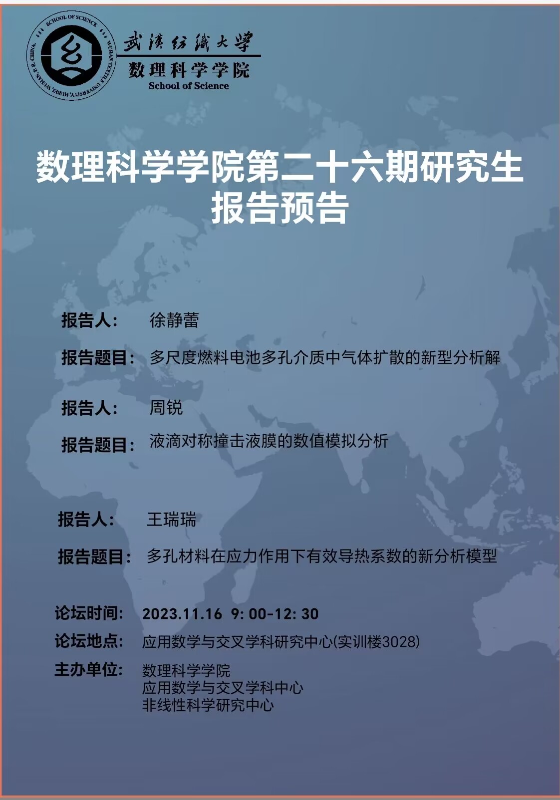 学术预告:第417期研究生学术论坛暨数理科学学院2023年第26期研究生学术论坛