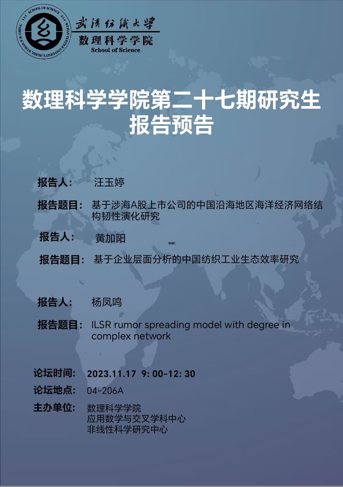 学术预告:第418期研究生学术论坛暨数理科学学院2023年第27期研究生学术论坛