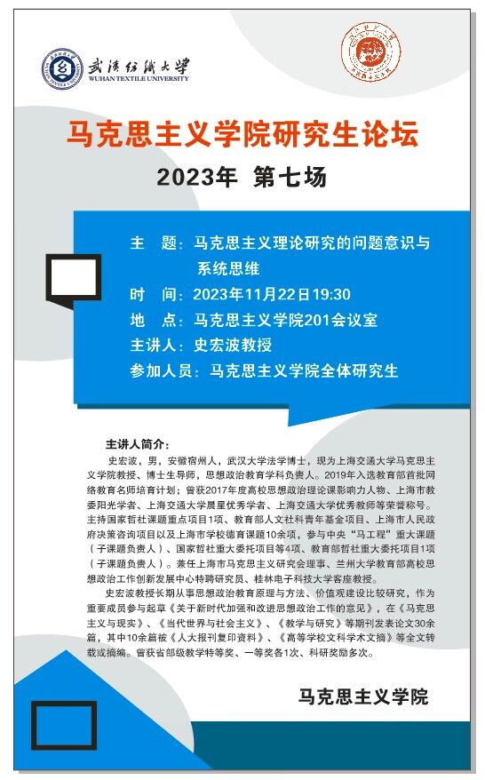 学术预告:第427期研究生学术论坛暨马克思主义学院2023年第7期研究生学术论坛