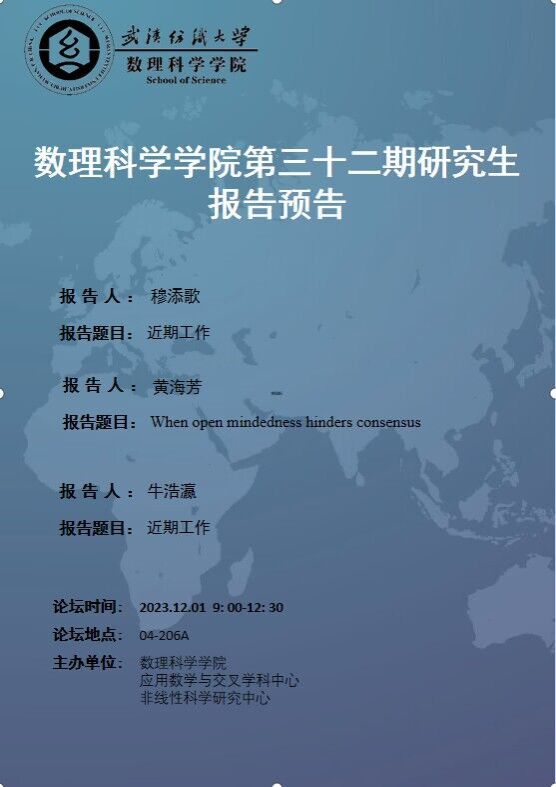学术预告:第444期研究生学术论坛暨数理科学学院2023年第32期研究生学术论坛