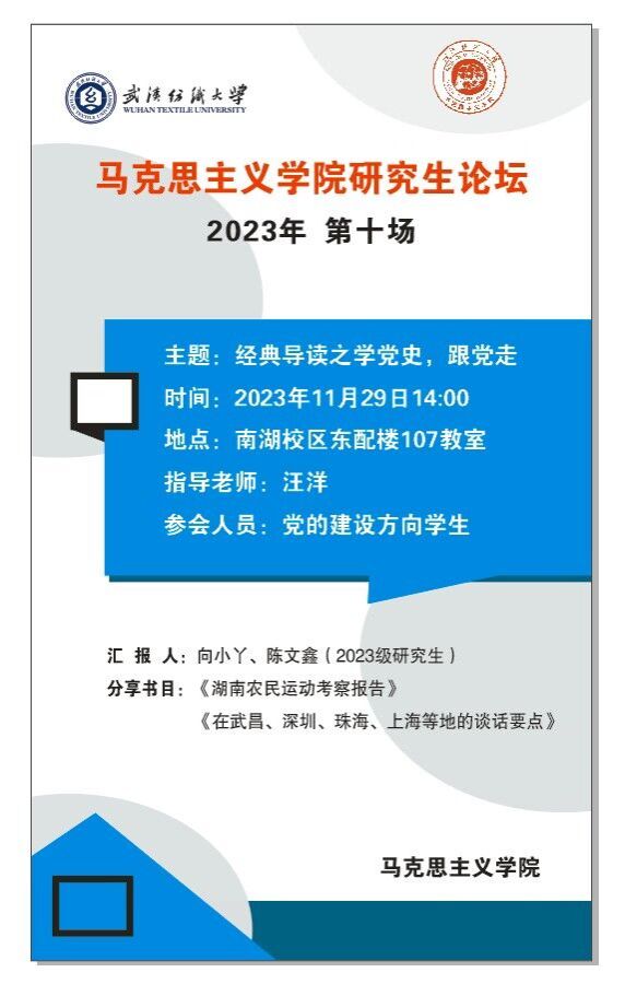 学术预告:第445期研究生学术论坛暨马克思主义学院2023年第10期研究生学术论坛