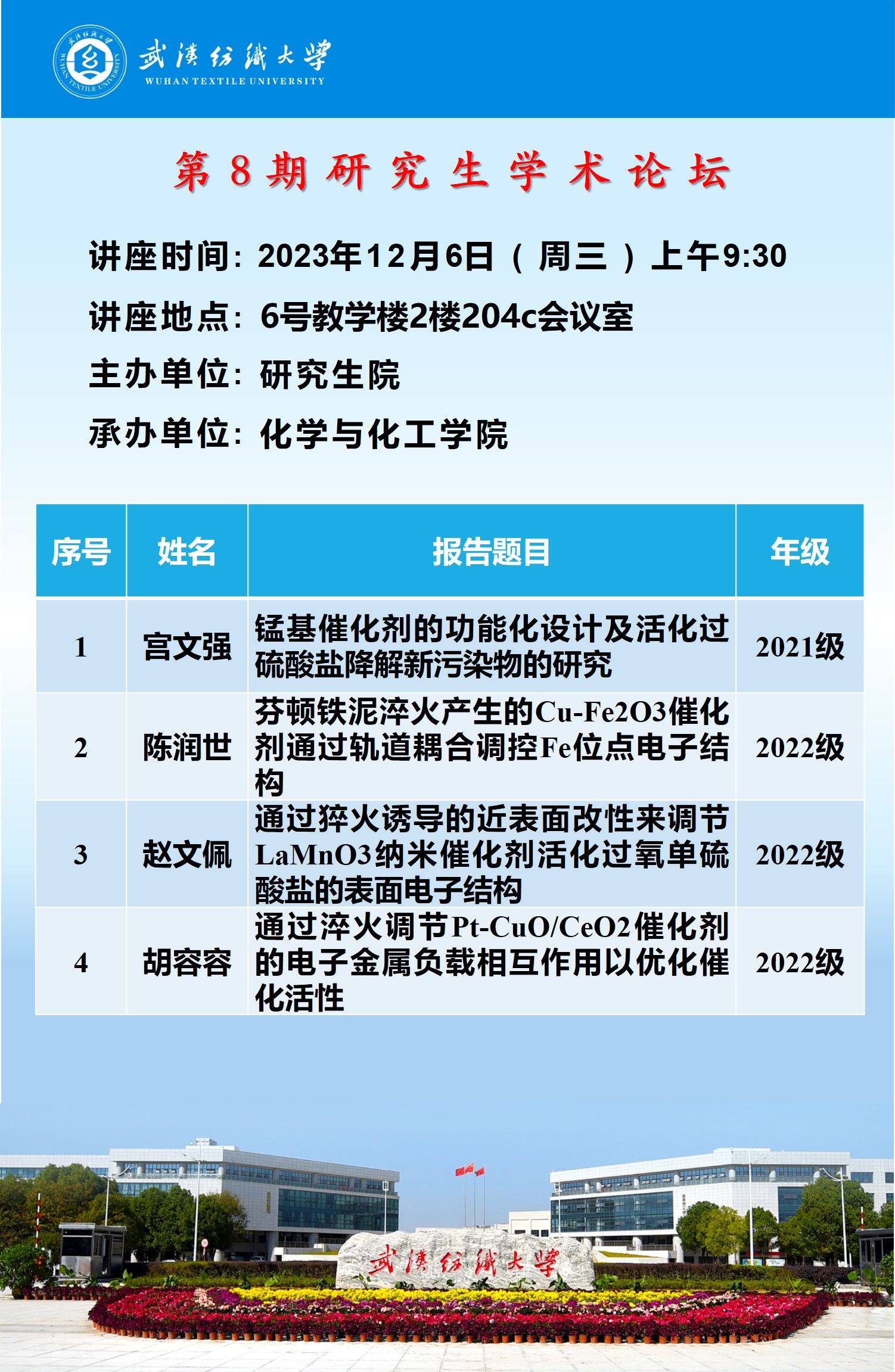 学术预告:第453期研究生学术论坛暨化学与化工学院2023年第7期研究生学术论坛