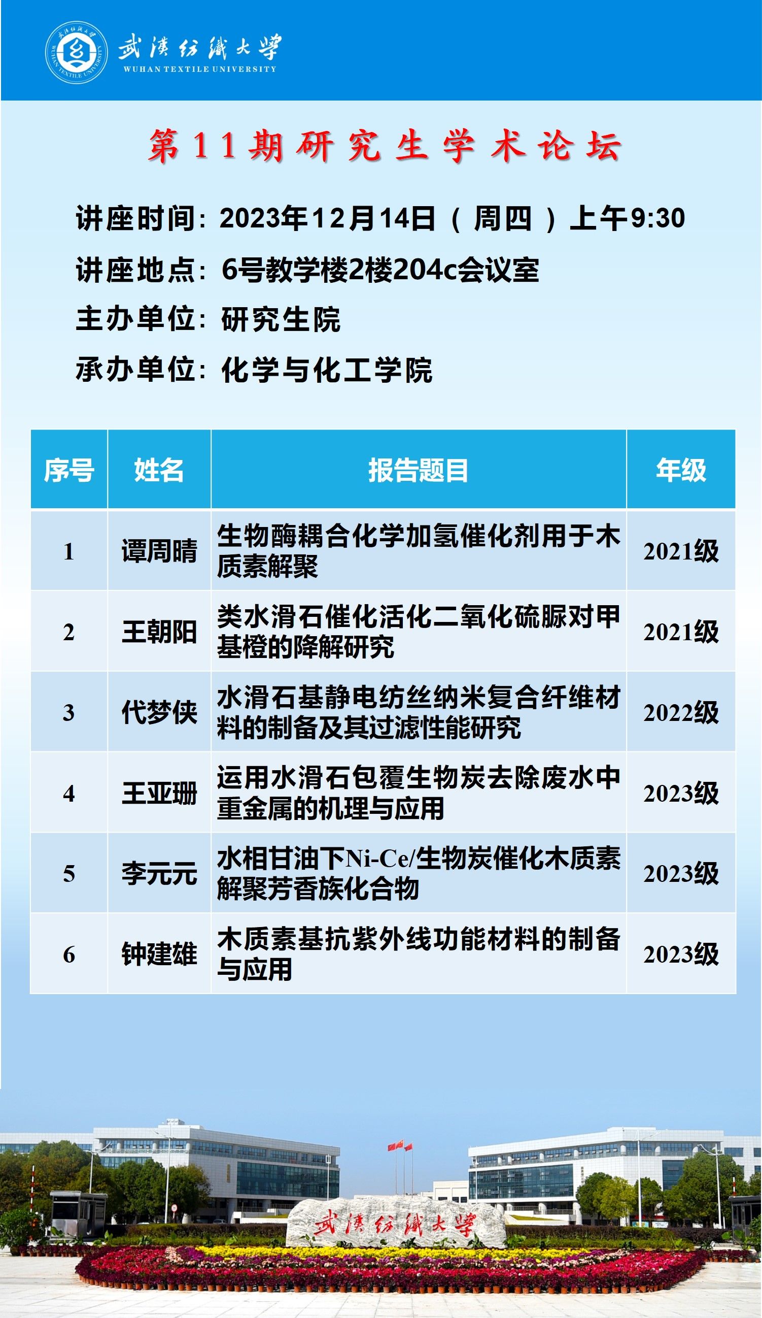 学术预告:第459期研究生学术论坛暨化学与化工学院2023年第10期研究生学术论坛