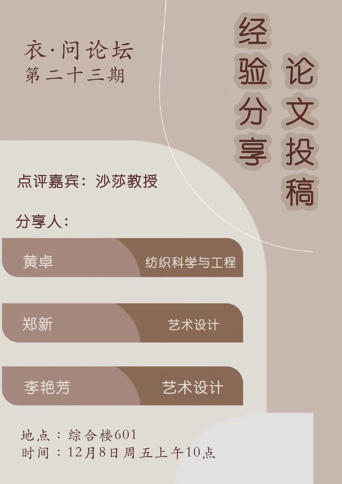 学术预告:第465期研究生学术论坛暨服装学院2023年第12期研究生学术论坛