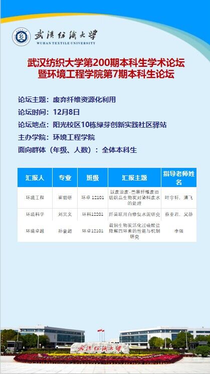 第200期本科生学术论坛暨环境工程学院第7期本科生论坛