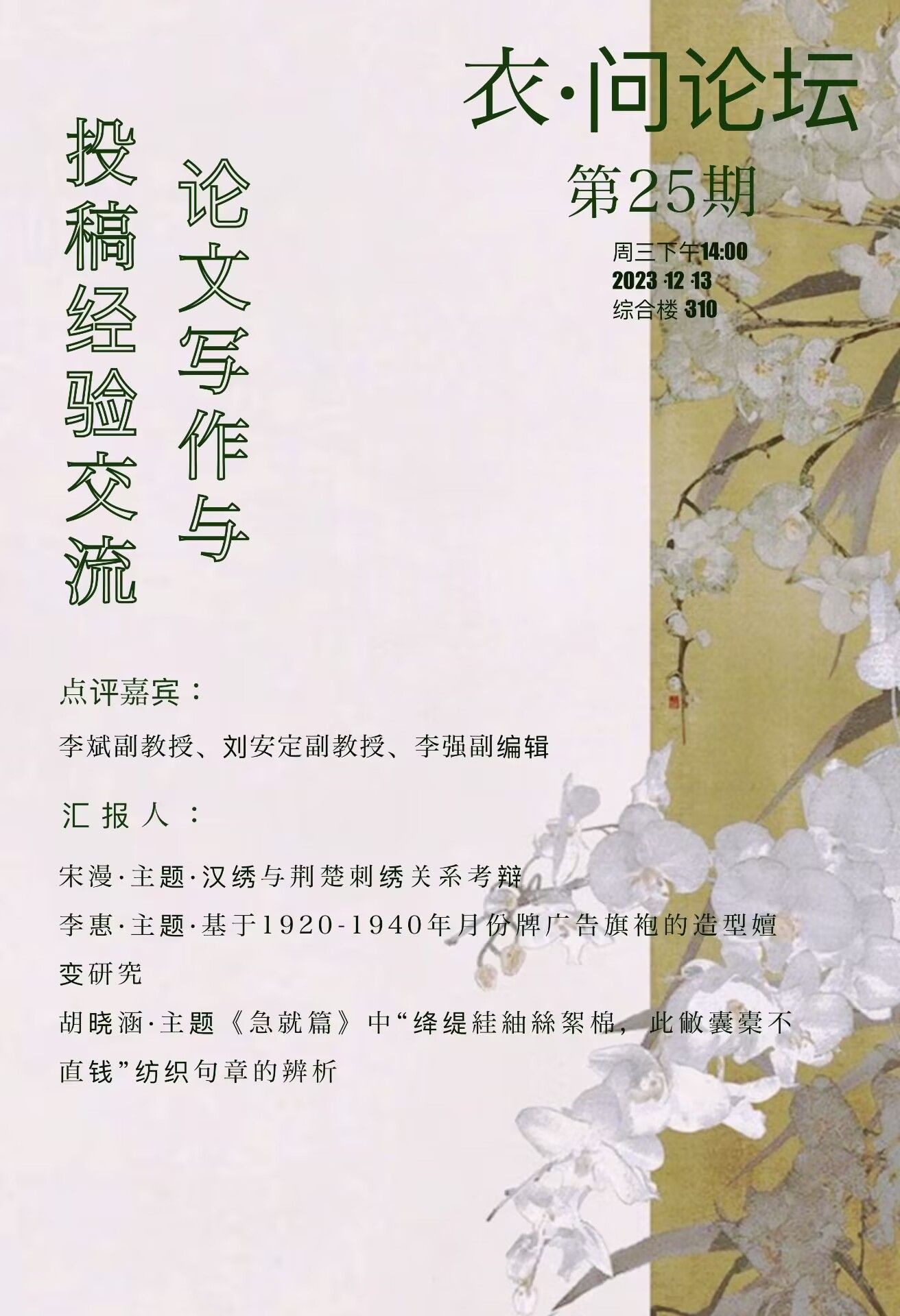 学术预告:第472期研究生学术论坛暨服装学院2023年第13期研究生学术论坛